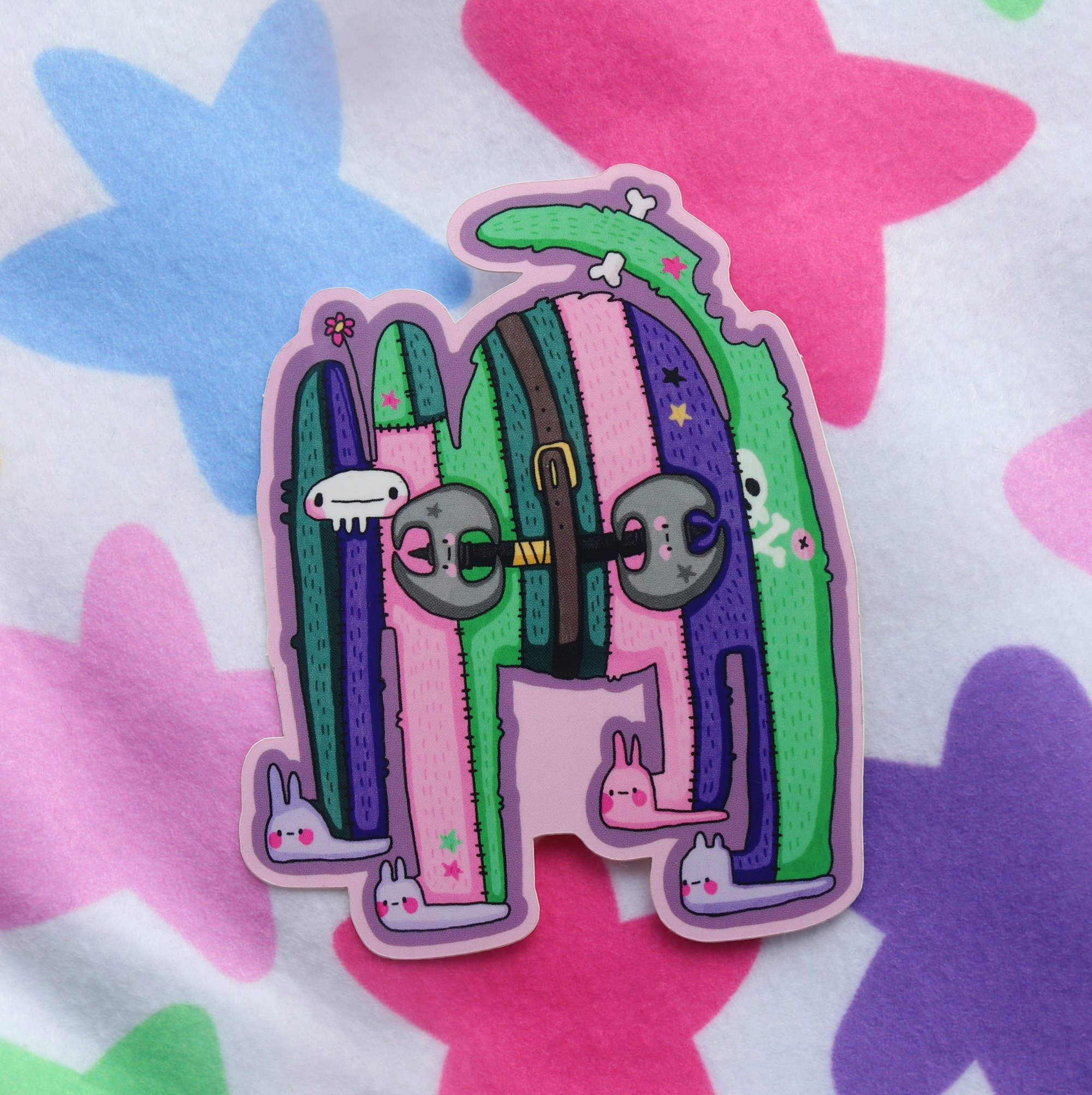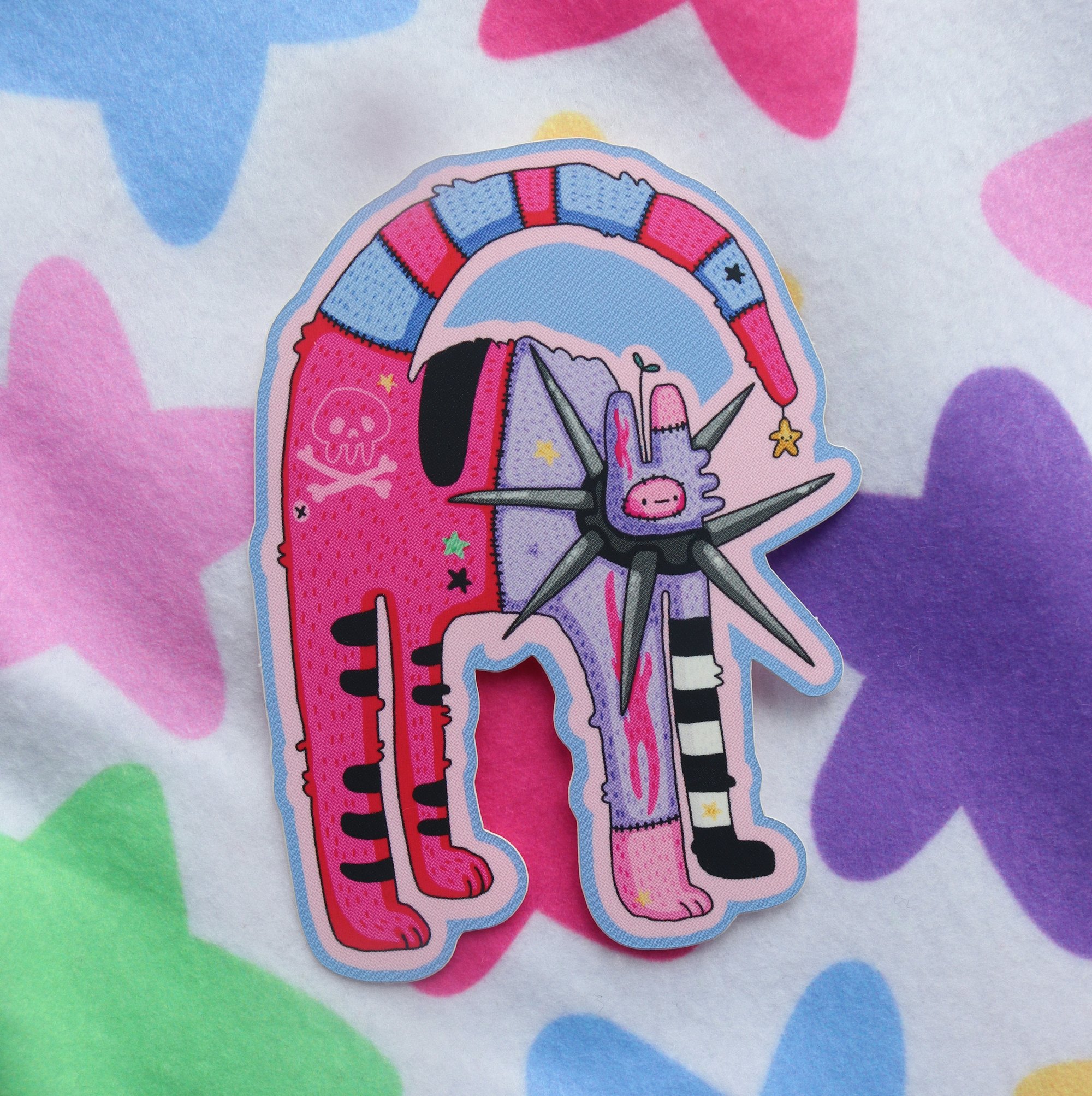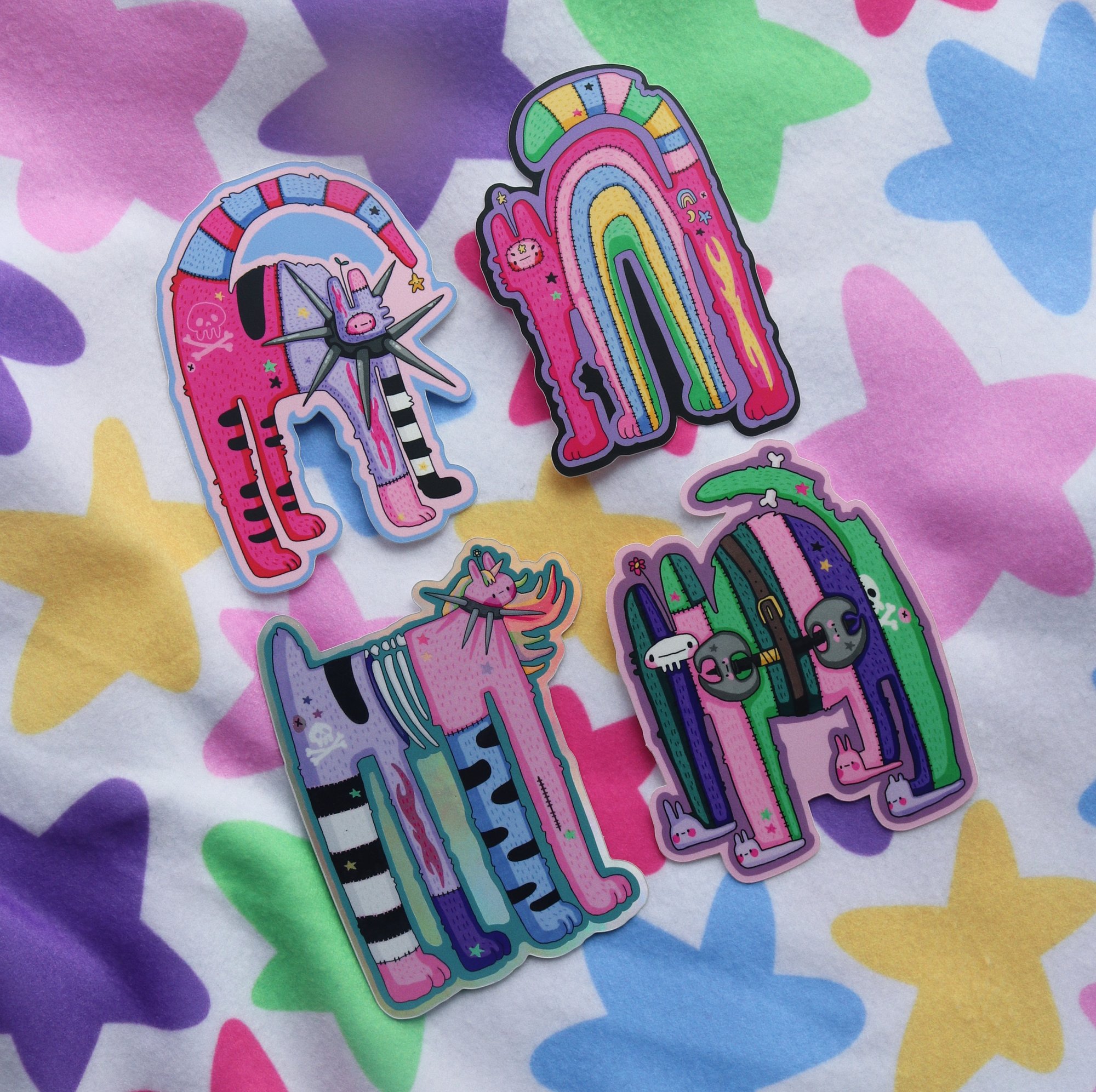 Rainbow Kitty: 6cm x 9.5cm, matte vinyl finish.