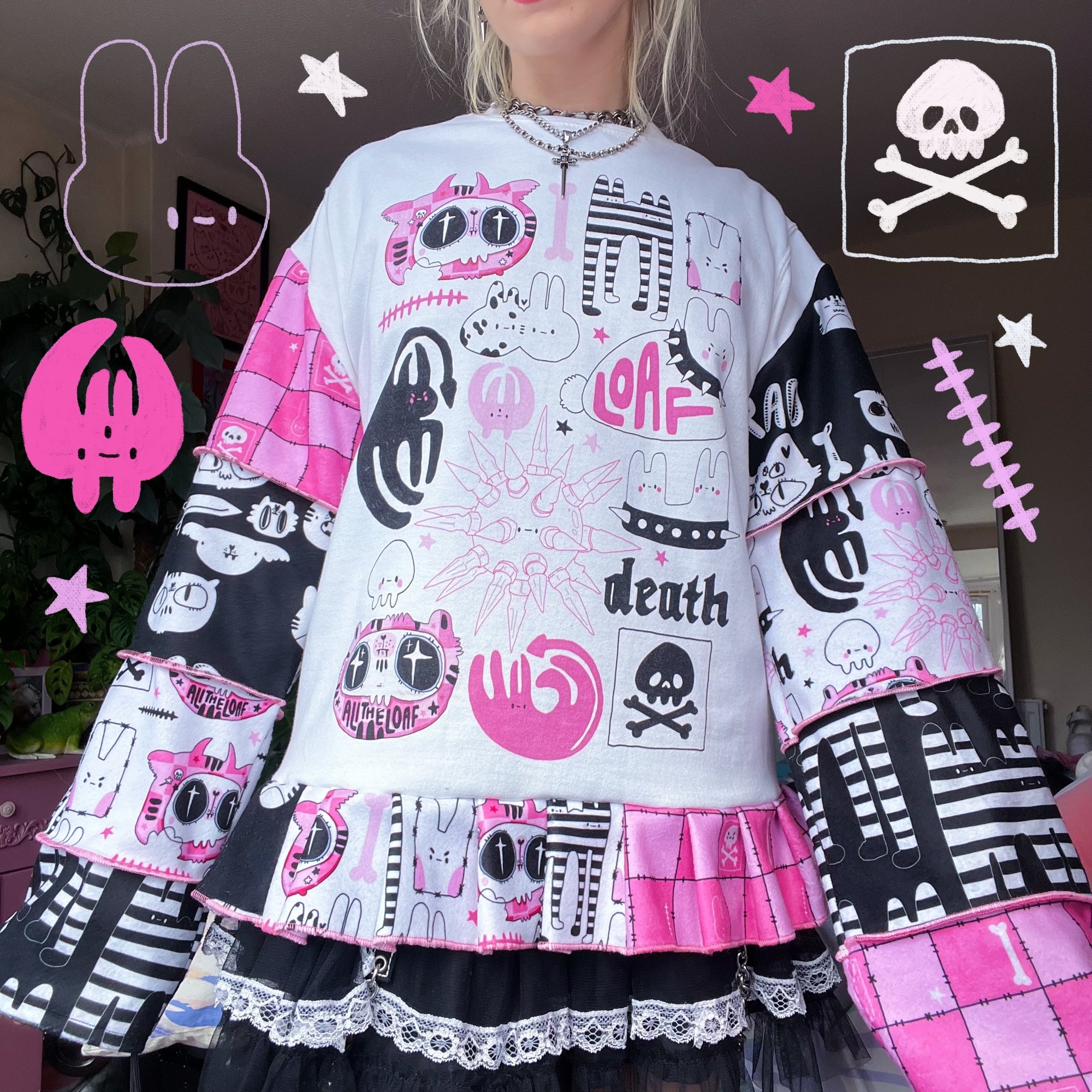 A sweater fully designed and constructed by me using the softest fleecy soft materials. Each fabric and front and back artwork are all drawn and designed by me!