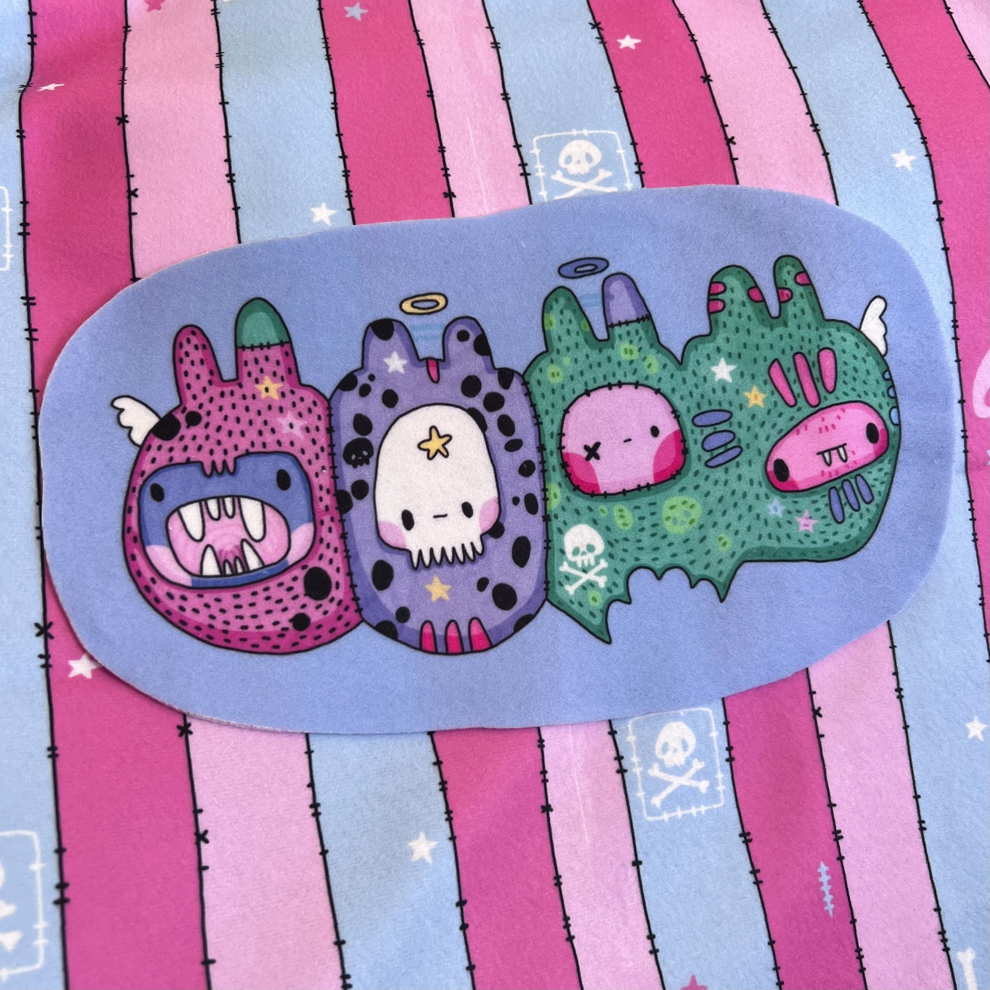 This patch is a fleecy material suitable for both hand or machine sewing onto whatever you please! They can also be machine washed on cool, so can be sewed onto clothing too.